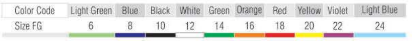 - Color coded connectors for easy identification of size as per standards.